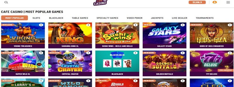 3. Cafe Casino – Best First Deposit Bonus of any Online Casino